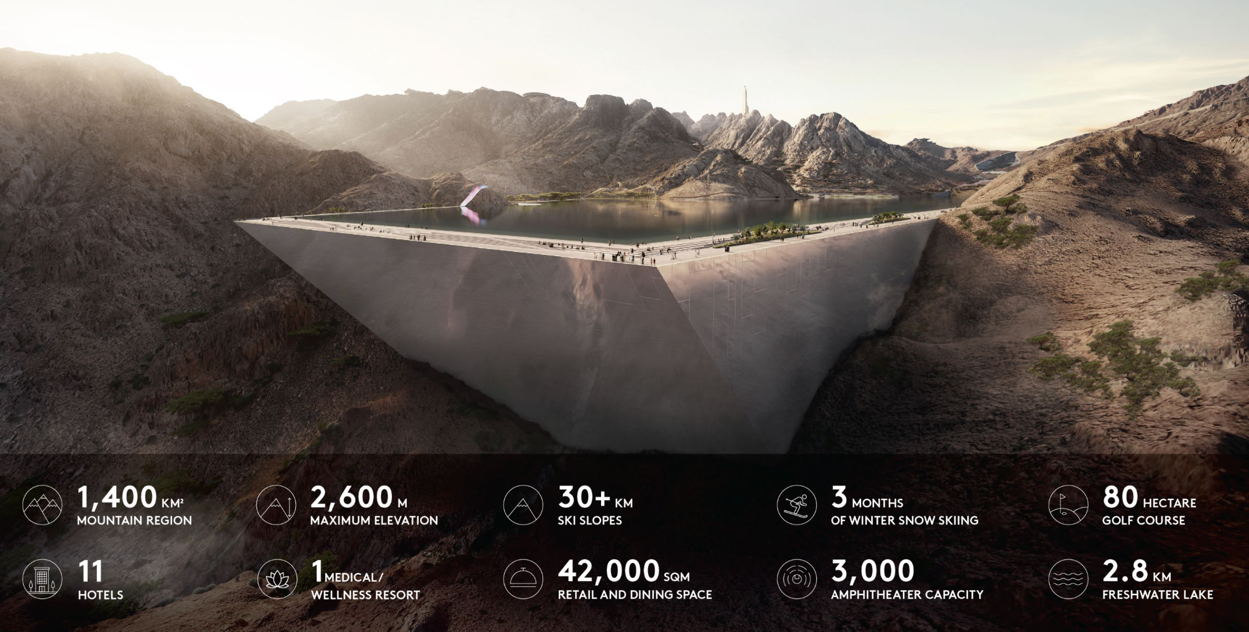 Trojena: winter sports in the desert, on pause